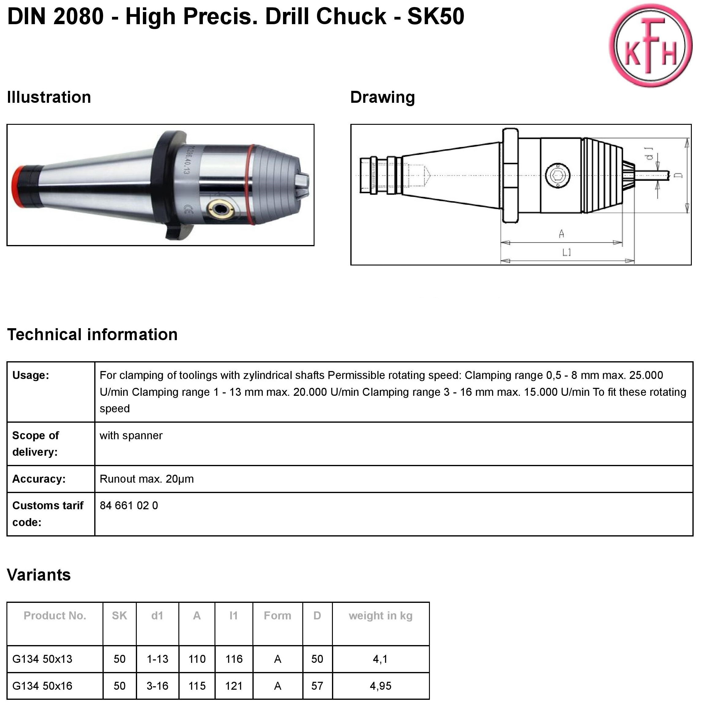 E028-120 G134 50x16 UCHWYT WIERTARSKI ISO50-16-L100 CNC SZT. 1 251,47