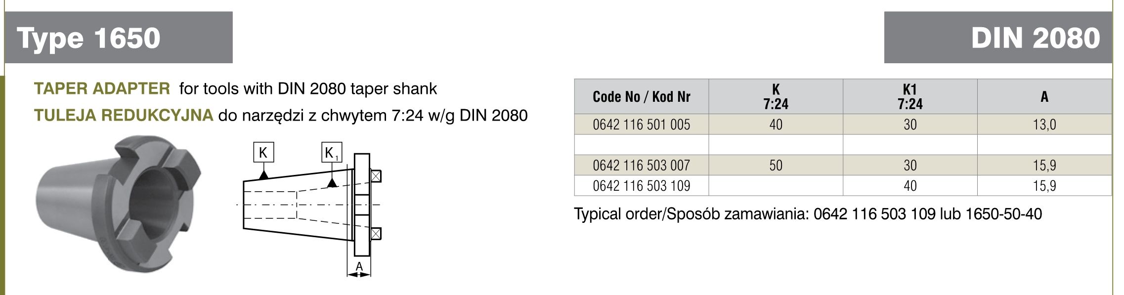 E044-060 0642116503007 TULEJA REDUKCYJNA ISO50-30-L16 SZT. 360,90