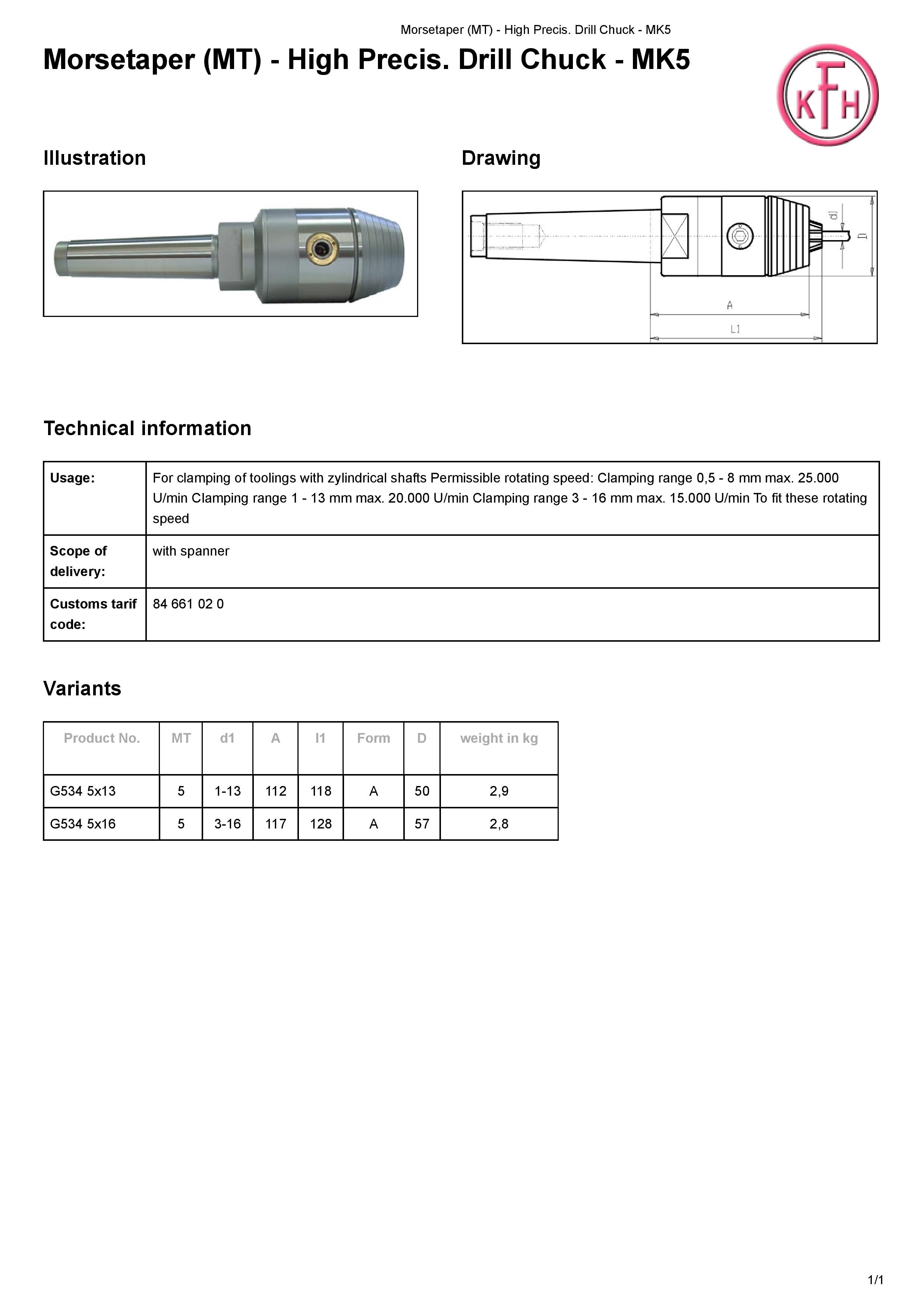 E298-520 G534 5x16 UCHWYT WIERTARSKI PRECYZYJNY MK5-16-L128 SZT. 2 261,26