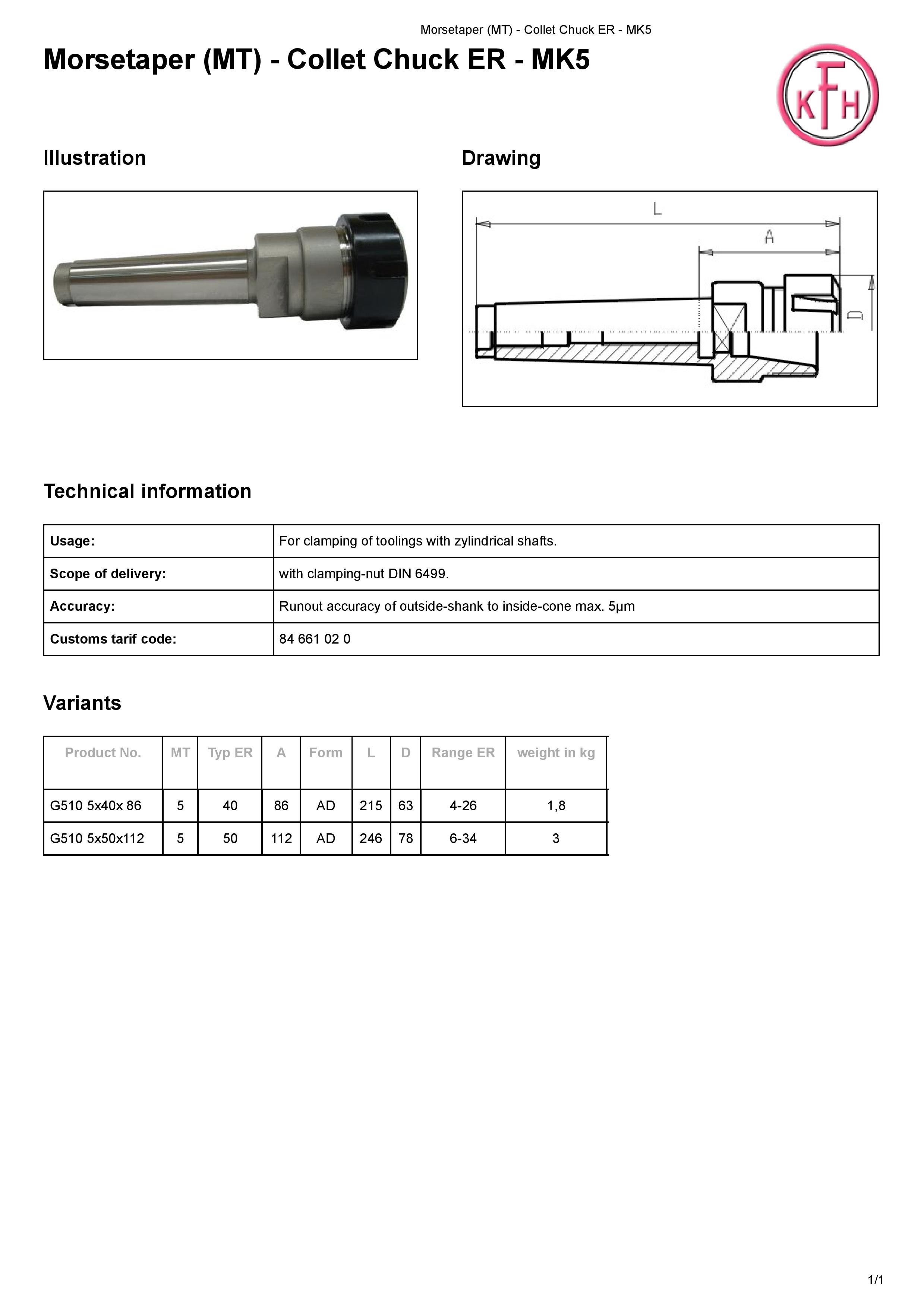 E275-300 G510 5x50x112 OPRAWKA ZACISKOWA MK5-ER50-L112 SZT. 722,81