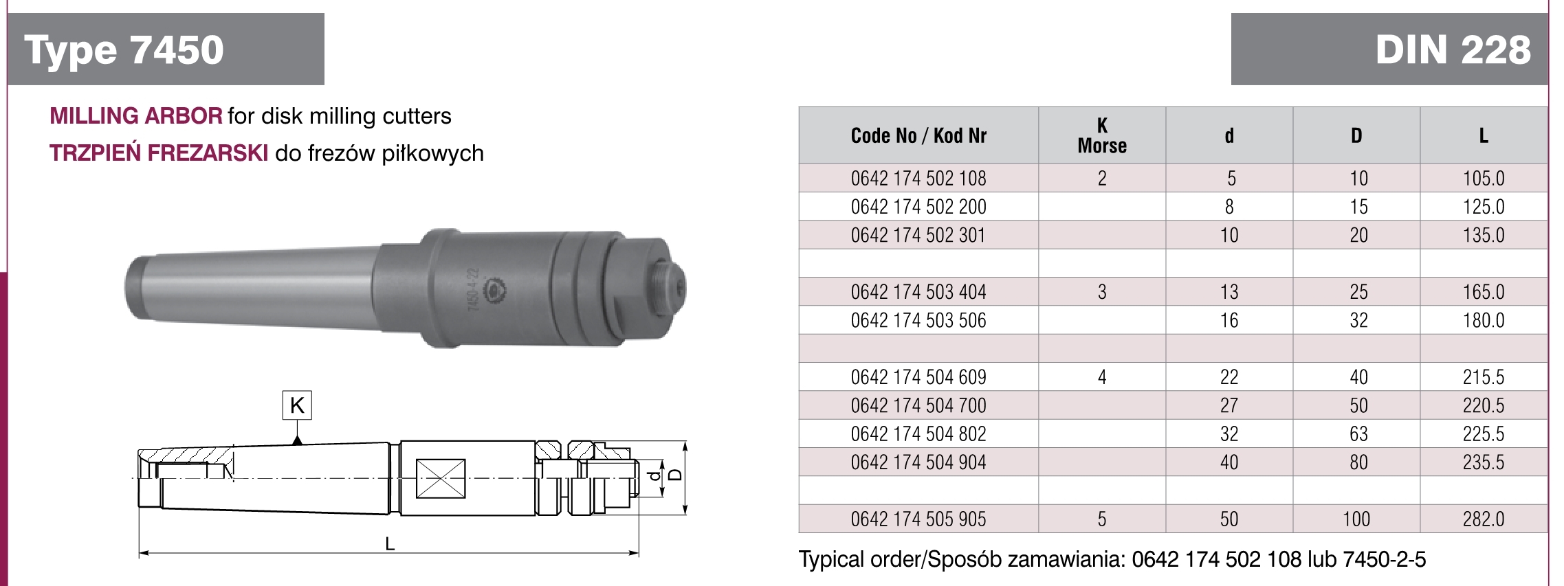 E281-040 0642174502200 TRZPIEŃ DO FREZÓW PIŁKOWYCH MK2-8 SZT. 232,84