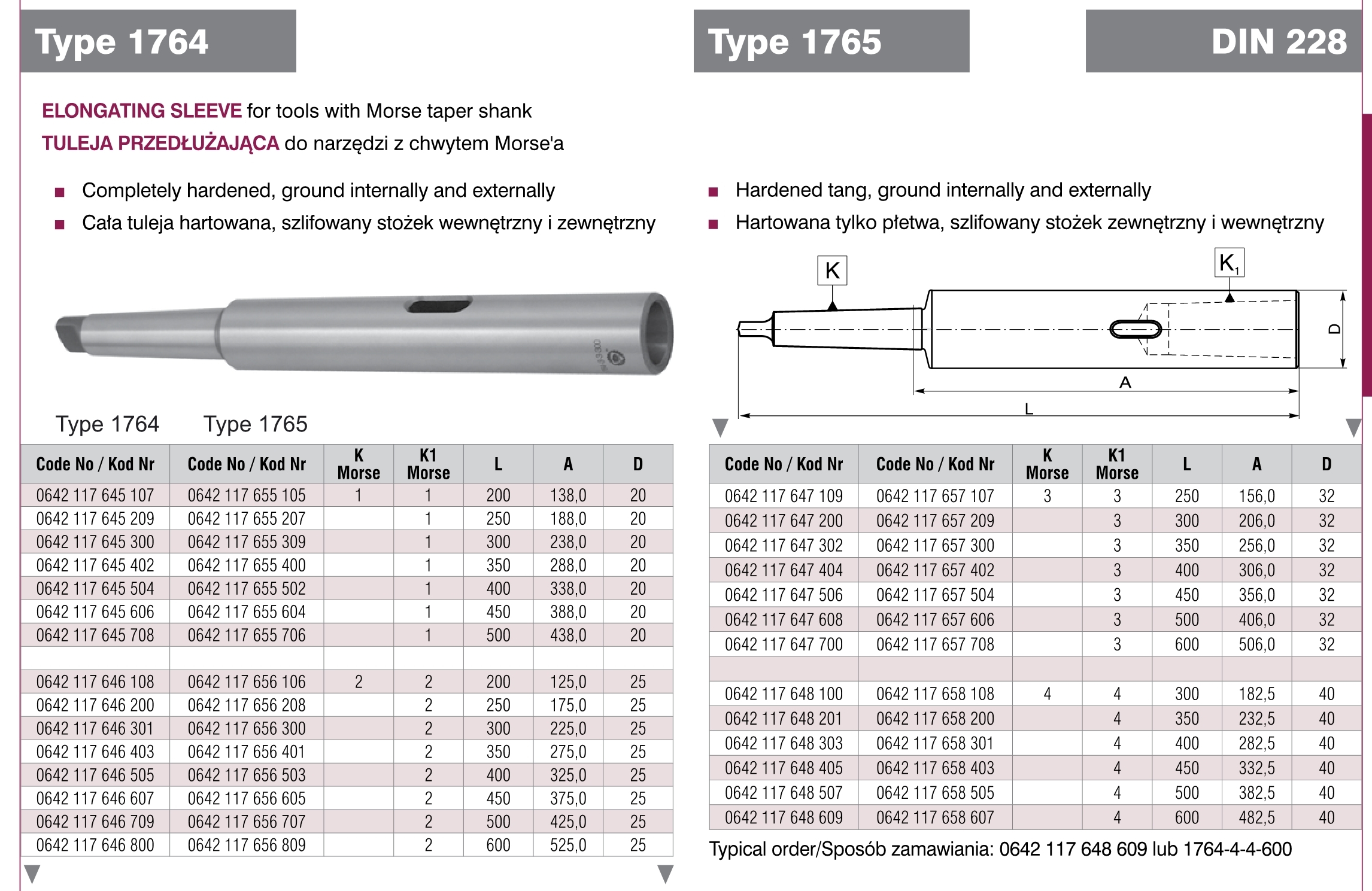 TULEJA REDUKCYJNA DŁUGA MK2-2-L175 HRc