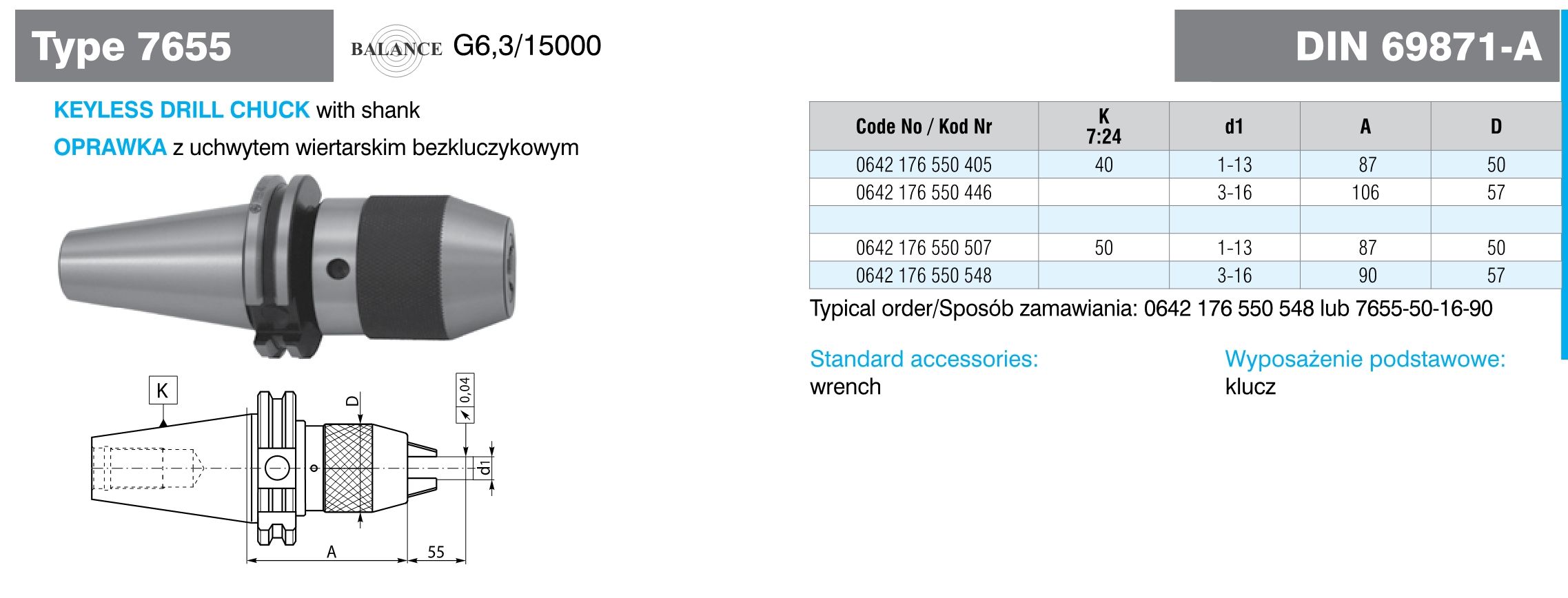 E105-080 0642176550548 UCHWYT WIERTARSKI DIN69871 50-16-L90 SZT. 849,85