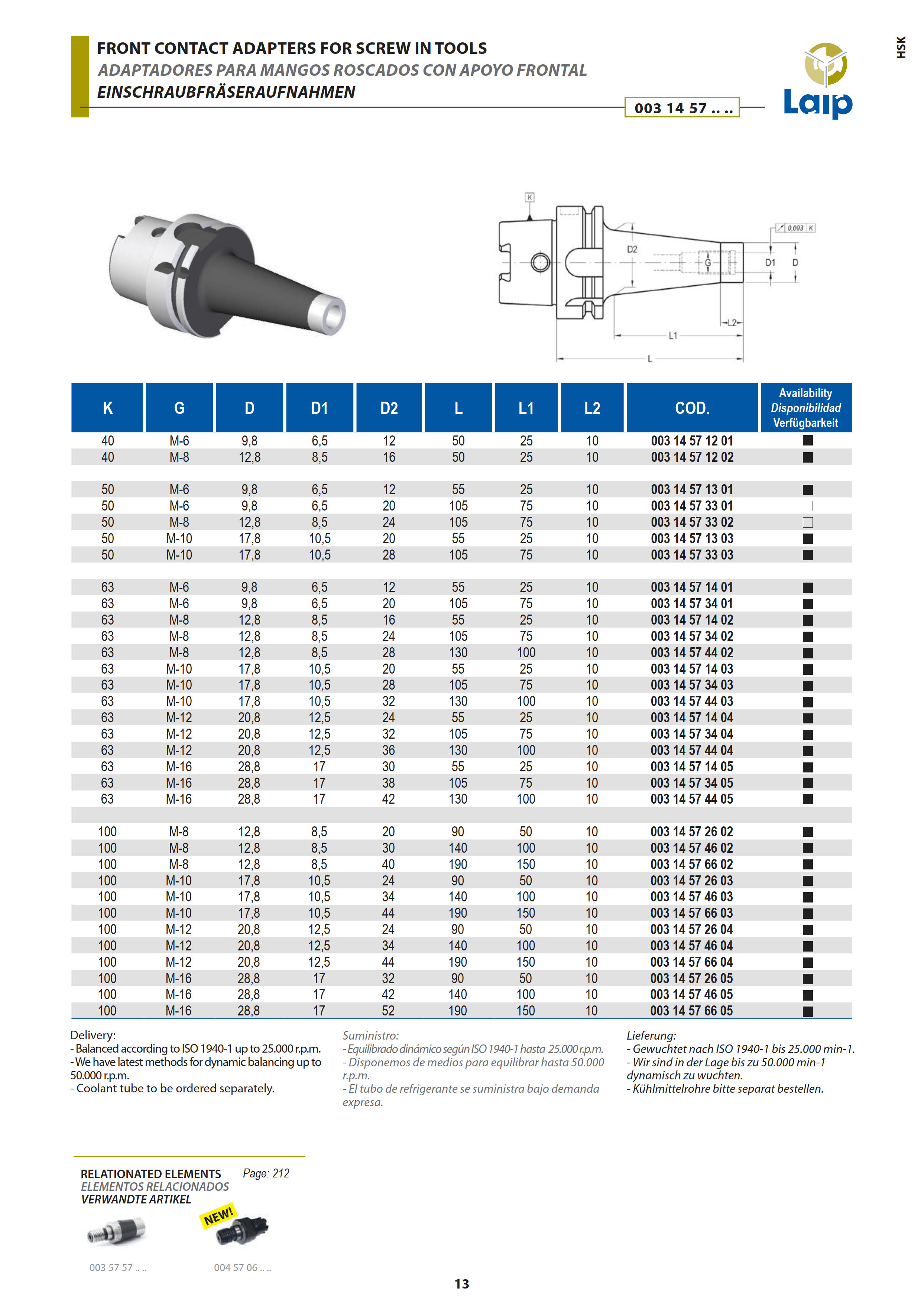 E222-160 00314571404 OPRAWKA Z GWINTEM HSK-A 63-M12-L55 SZT. 717,58