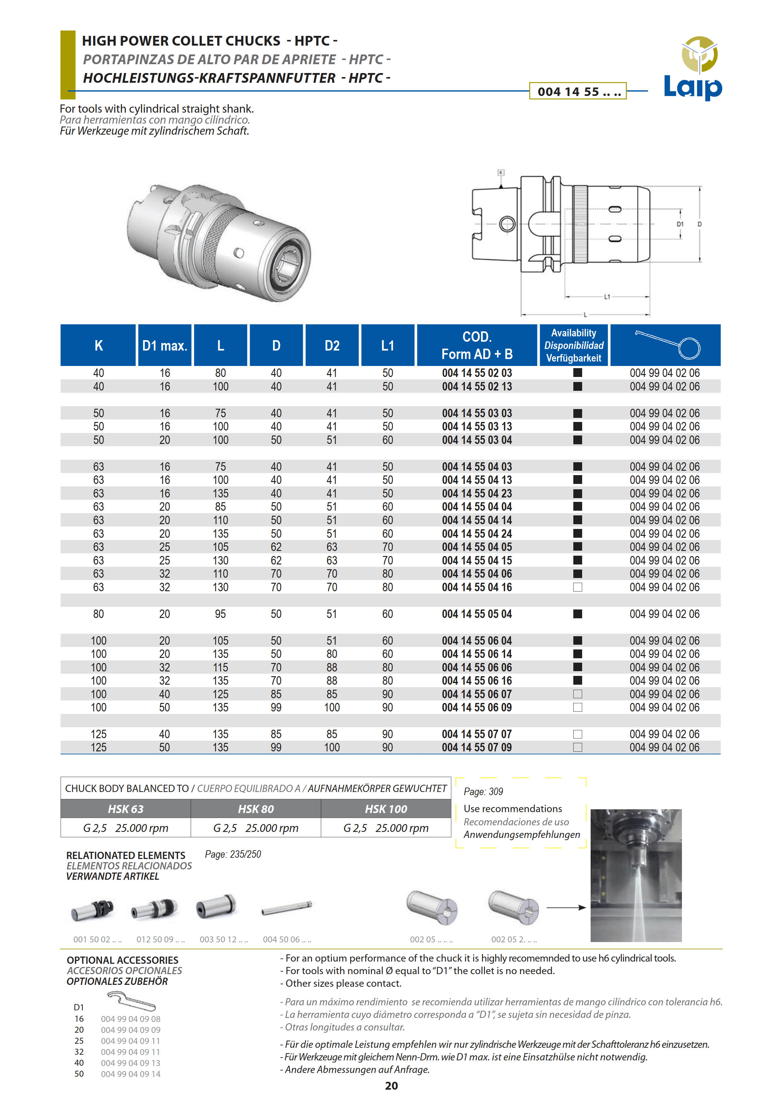 OPRAWKA ZACISKOWA HSK-A 100-20-L105 POWER HPTC