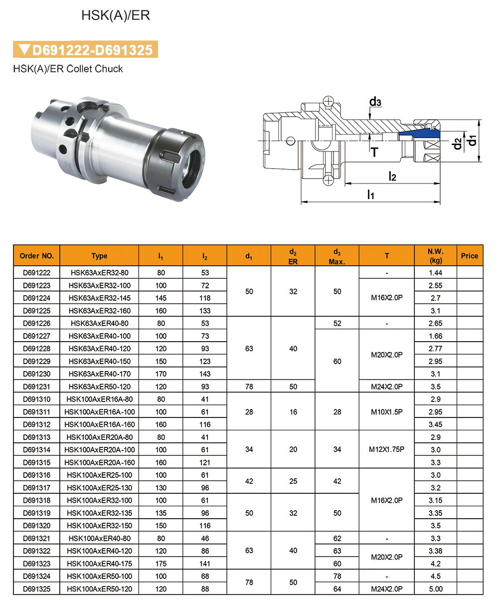 OPRAWKA ZACISKOWA HSK-A 100-ER50-L120