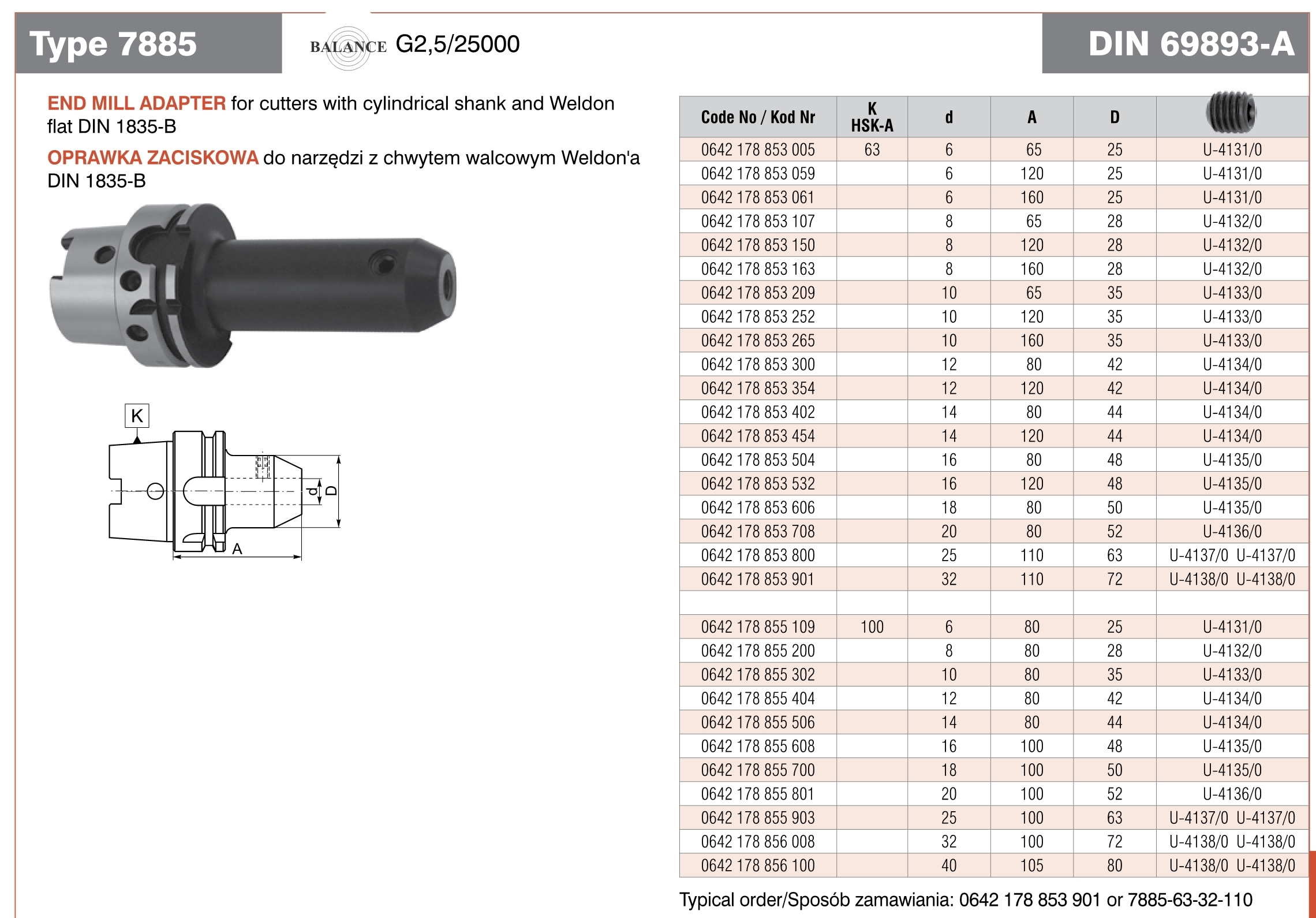 OPRAWKA ZACISKOWA HSK-A 63-25-L110