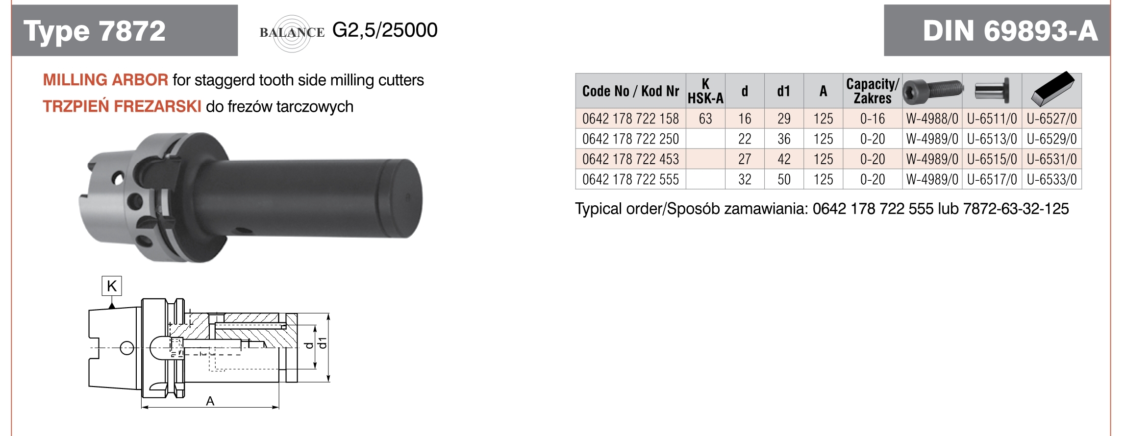 E240-030 0642178722453 TRZPIEŃ FREZARSKI HSK-A 63-27-L125 T SZT. 601,79