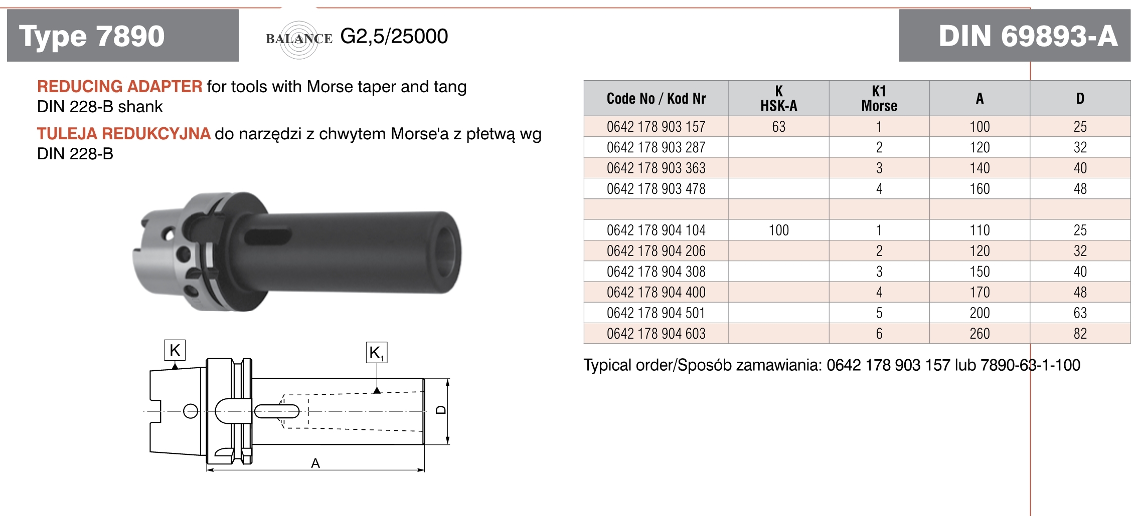 E259-020 0642178903157 TULEJA REDUKCYJNA HSK-A 63-1-L100 SZT. 372,54
