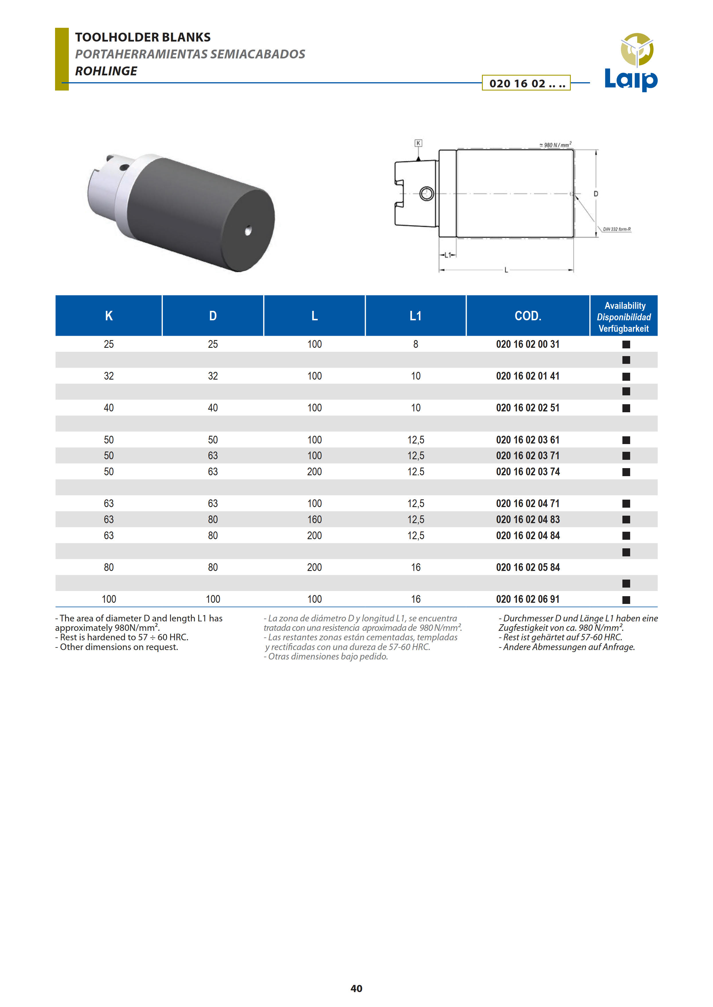 TRZPIEŃ PÓŁFABRYKAT HSK-C 40-40-L100