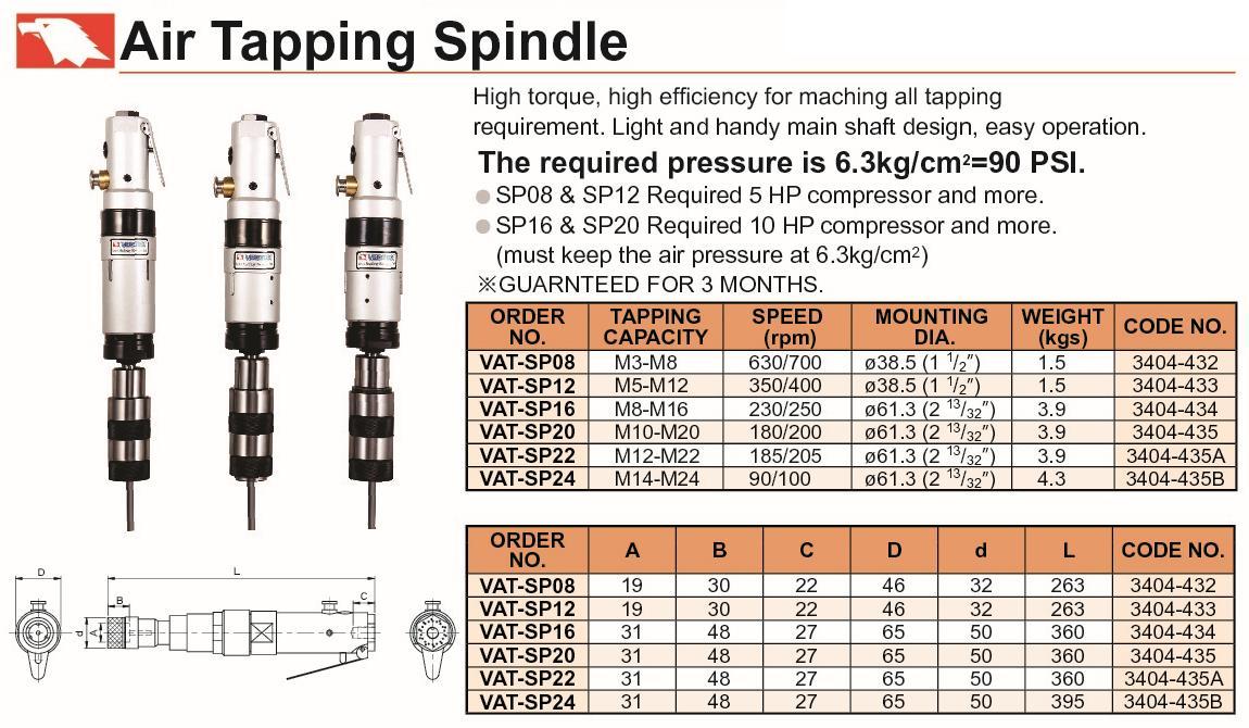 E824-300 3404-434 GŁOWICA PNEUMATYCZNA VAT-SP16 M8-M16 250 obr. SZT. 5 131,92
