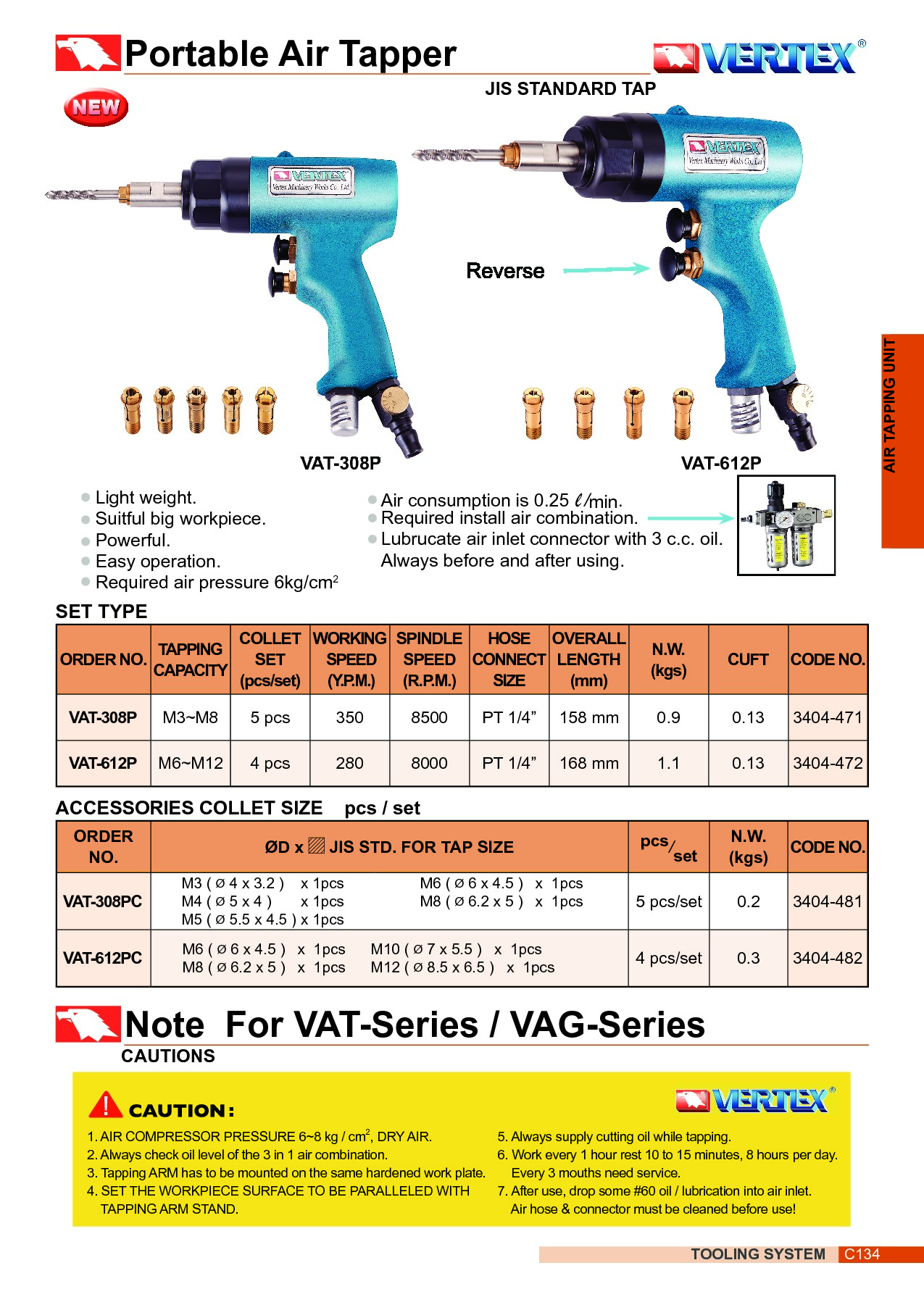E824-700 3404-471 GWINTOWNICA PNEUMATYCZNA VAT-308P M3-M8 KPL. 951,44
