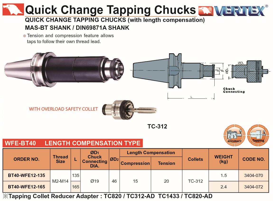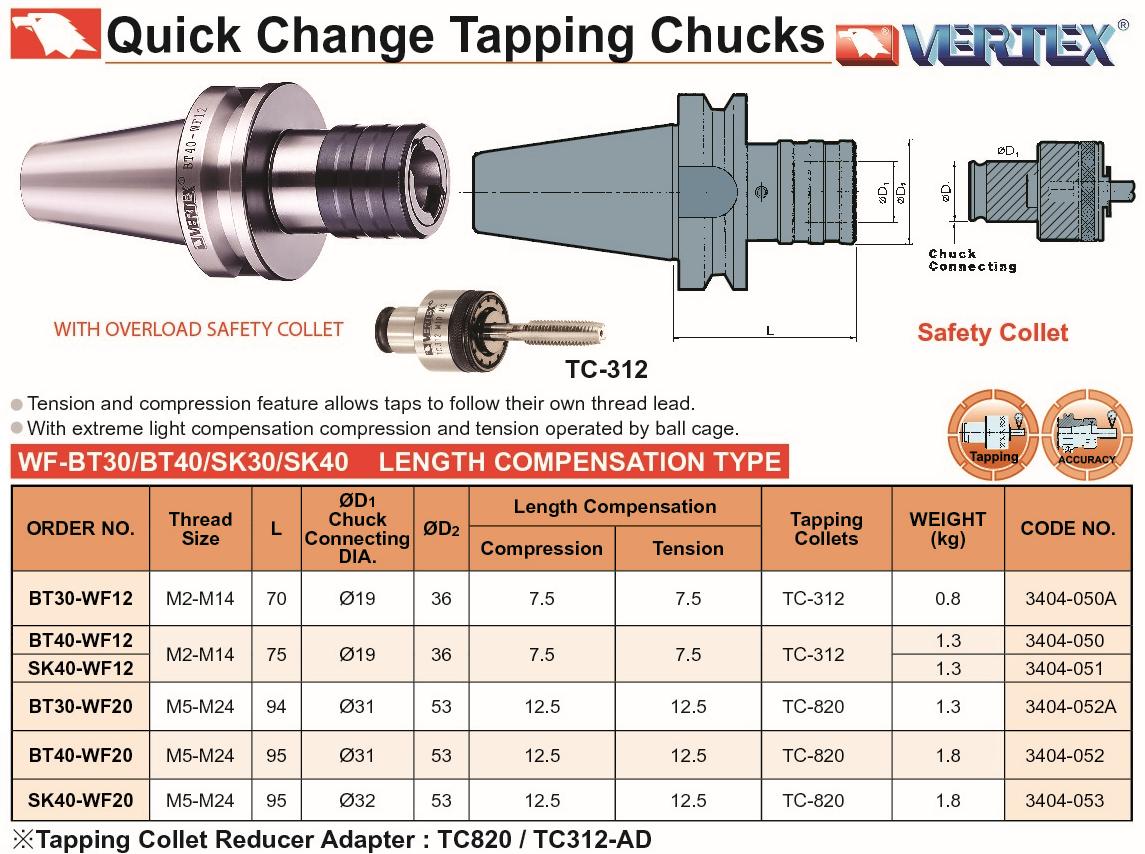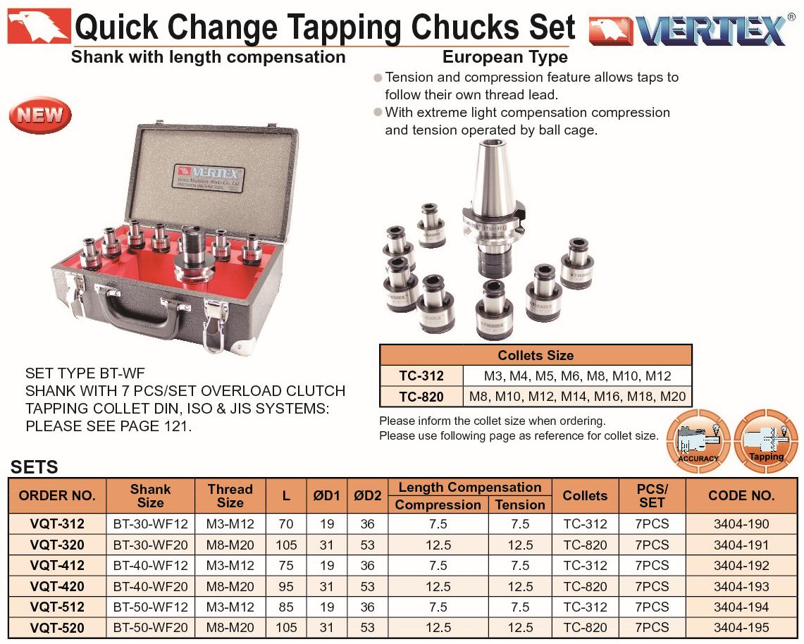 OPRAWKA Z KOMPENSACJĄ VQT-412 BT-40 M3-M12 KPL.7 zabieraków