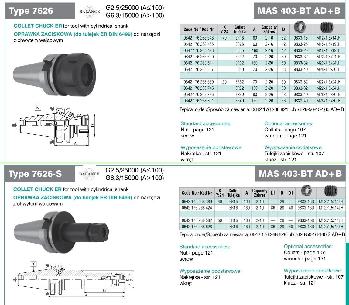 E135-140 0642176268567 OPRAWKA ZACISKOWA BT40-ER40-L70 AD+B SZT. 322,39