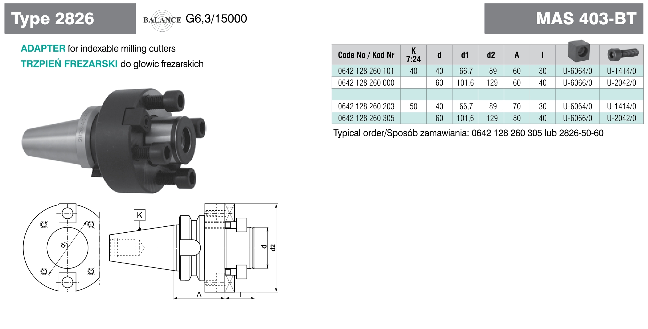 E173-080 0642128260305 TRZPIEŃ FREZARSKI BT50-60-L80 SZT. 782,69