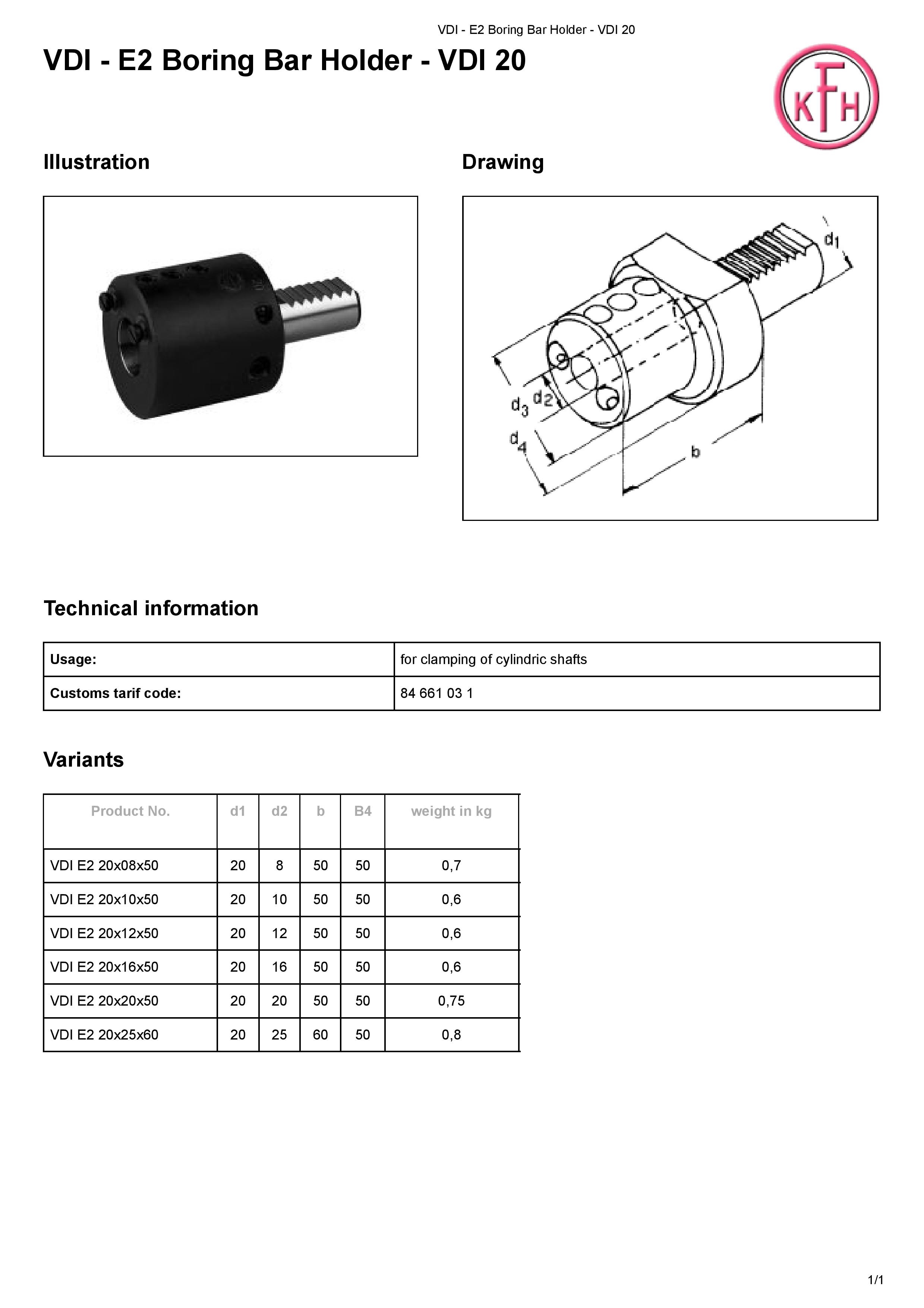 E610-120 VDI E2 20x08x50 OPRAWKA VDI E2 20-8-50 SZT. 295,03