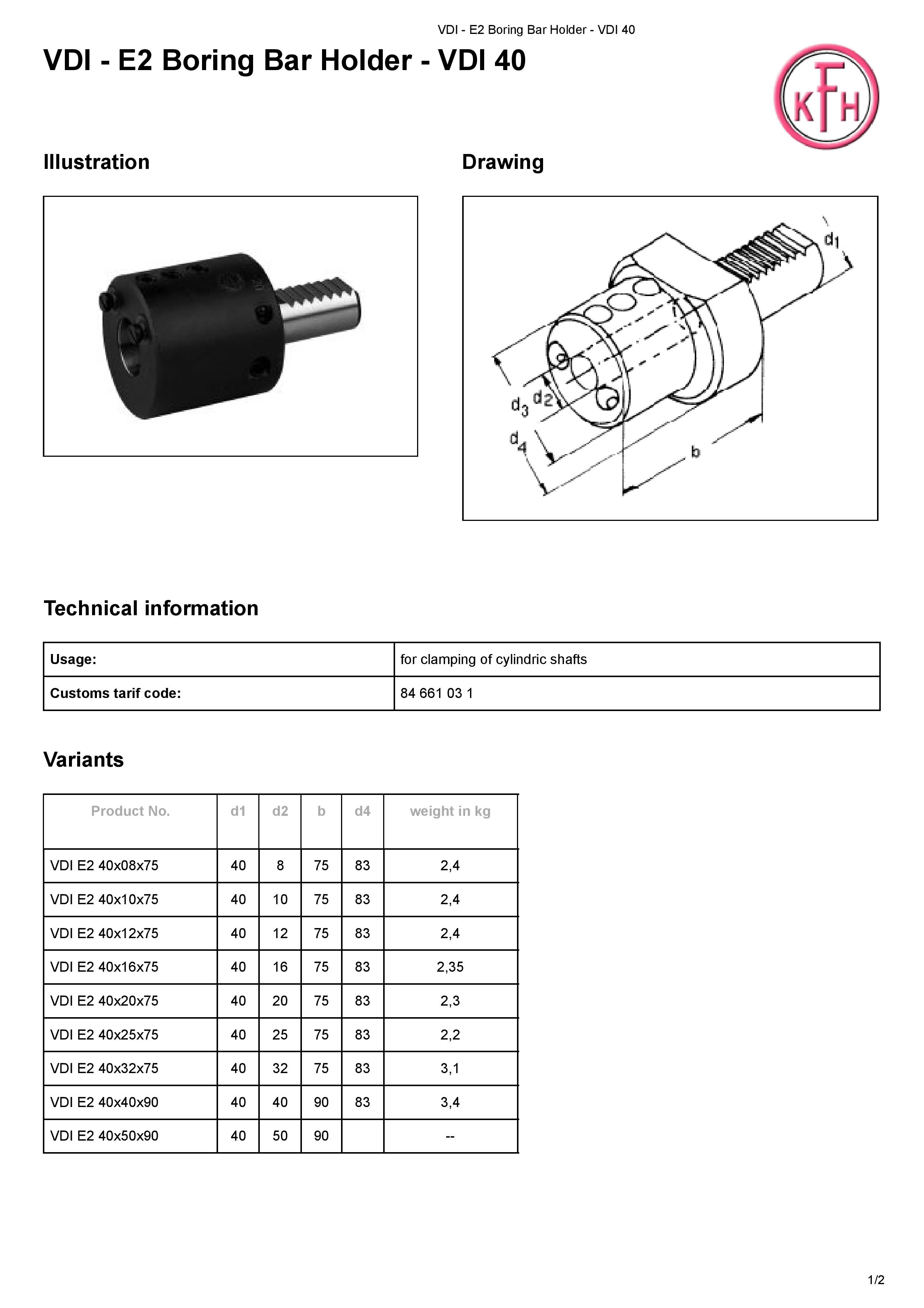 E610-420 VDI E2 40x12x75 OPRAWKA VDI E2 40-12-75 SZT. 341,48