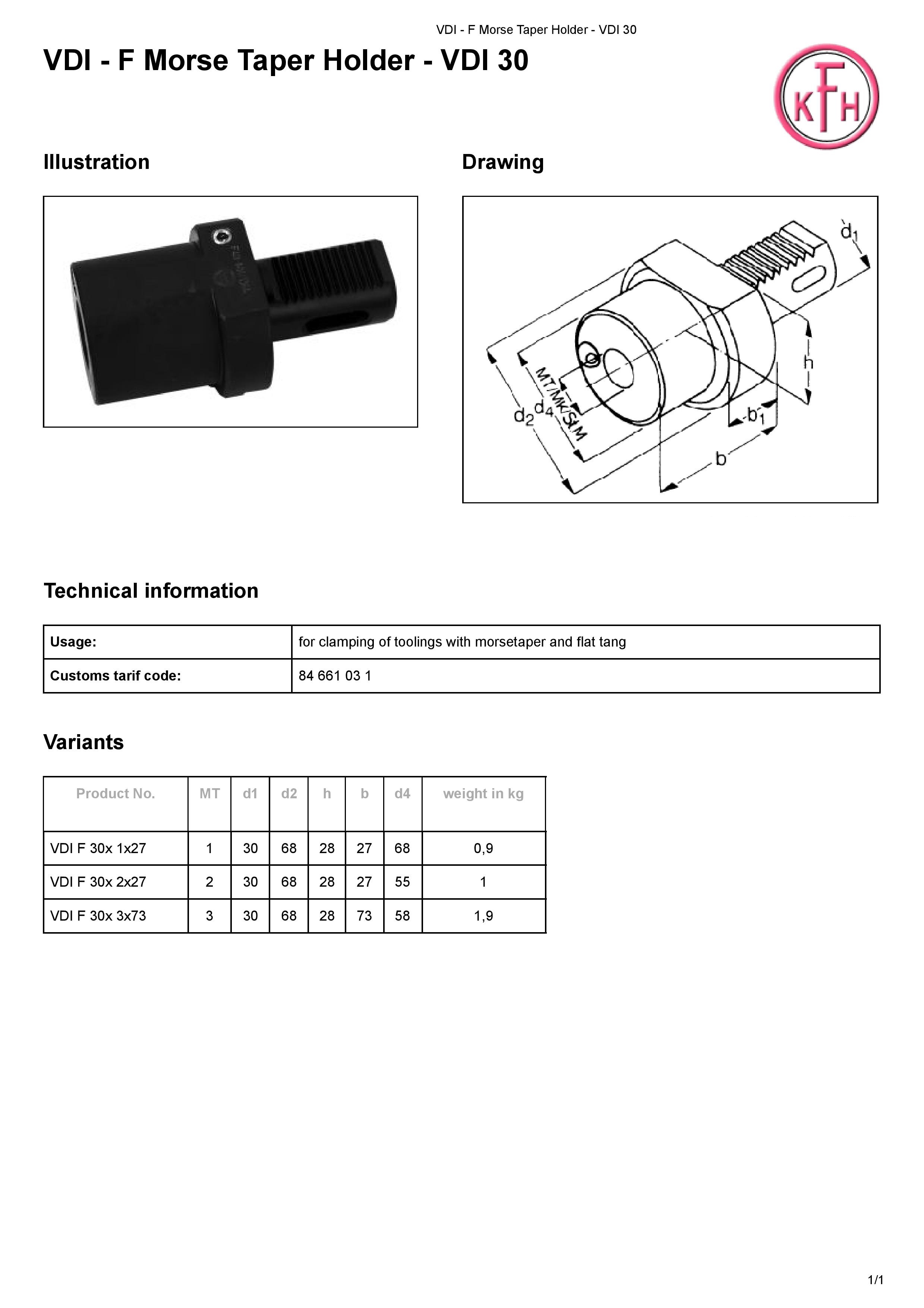 E640-080 VDI F 30x 2x27 OPRAWKA VDI F 30-MK2-27 SZT. 344,39