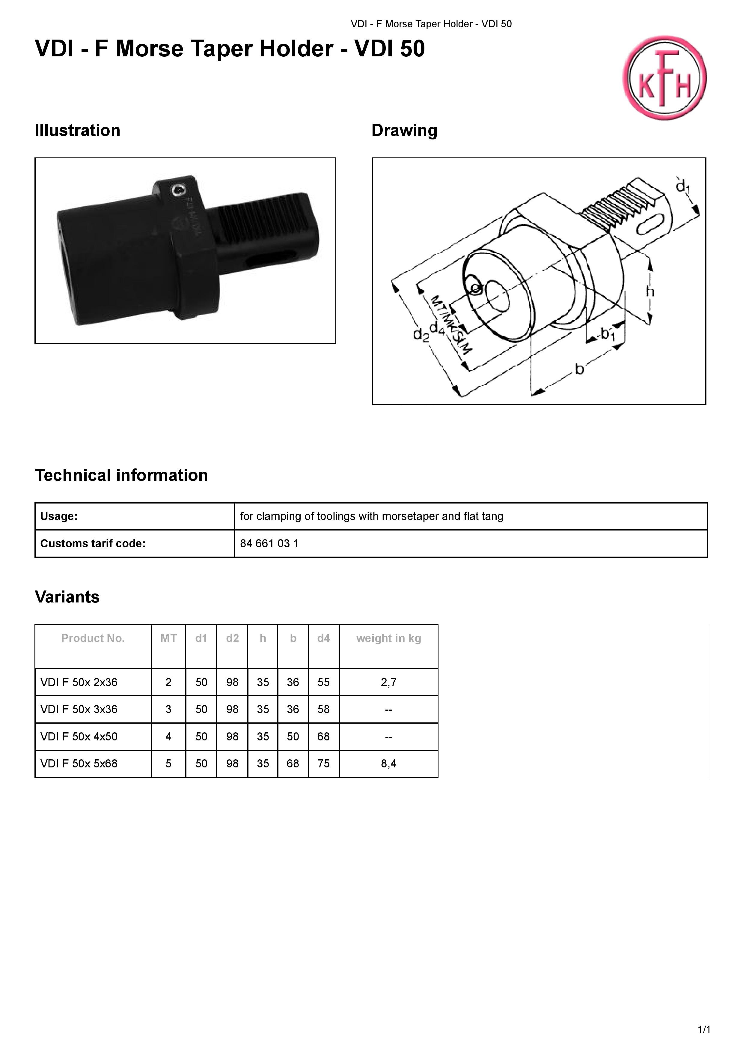 E640-200 VDI F 50x 2x36 OPRAWKA VDI F 50-MK2-36 SZT. 425,82