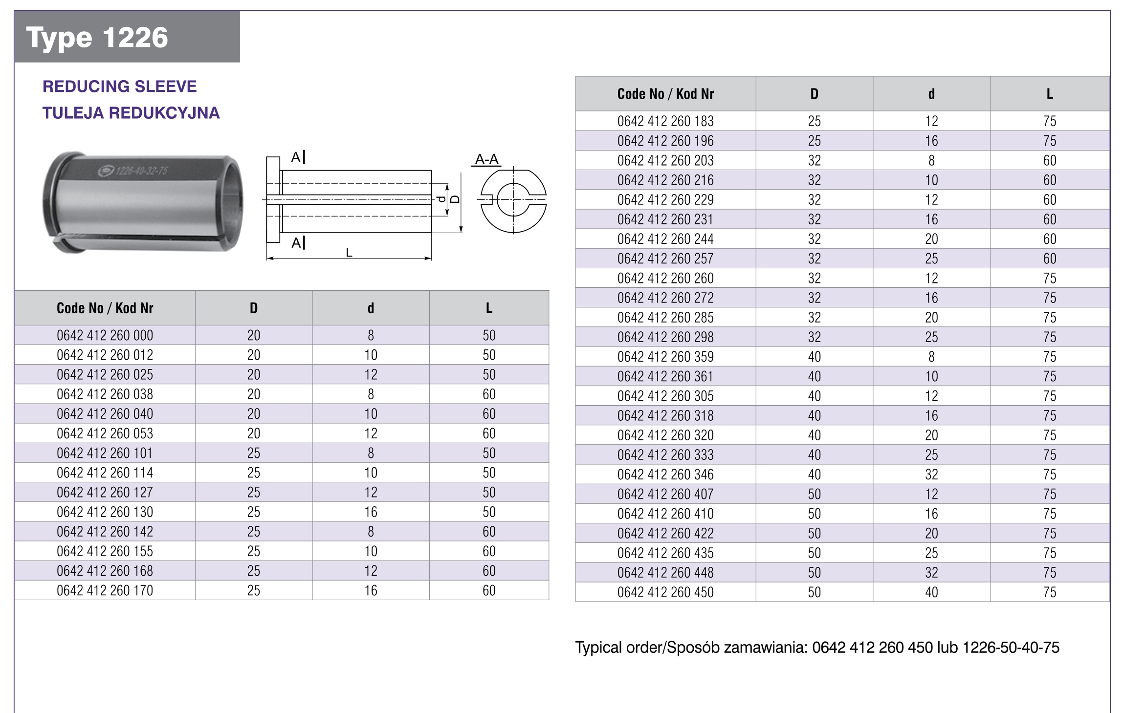 TULEJA REDUKCYJNA ZACISKOWA 40-12-L75