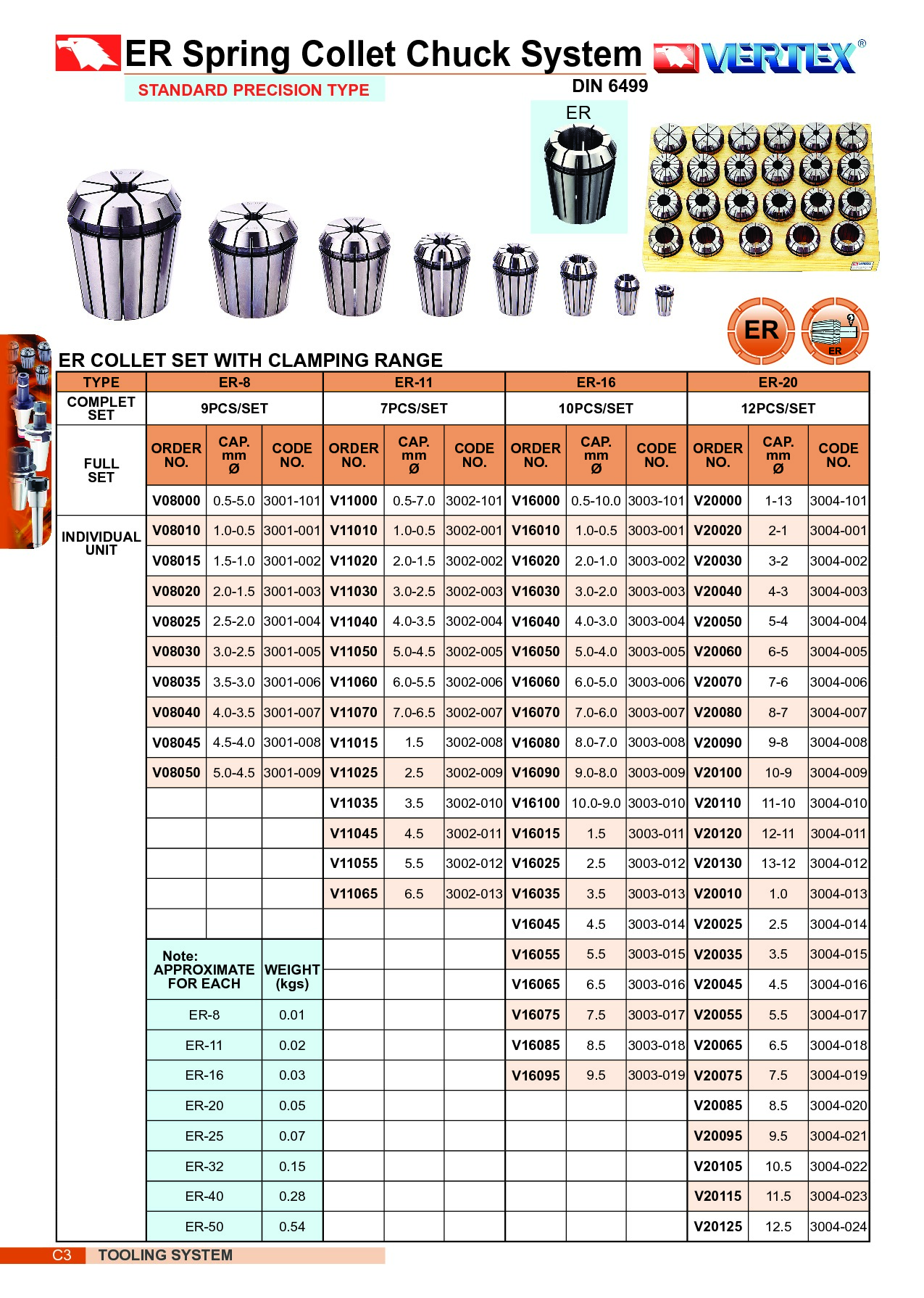 TULEJKI ZACISKOWE ER-50 10-34 kpl. 12 STANDARD