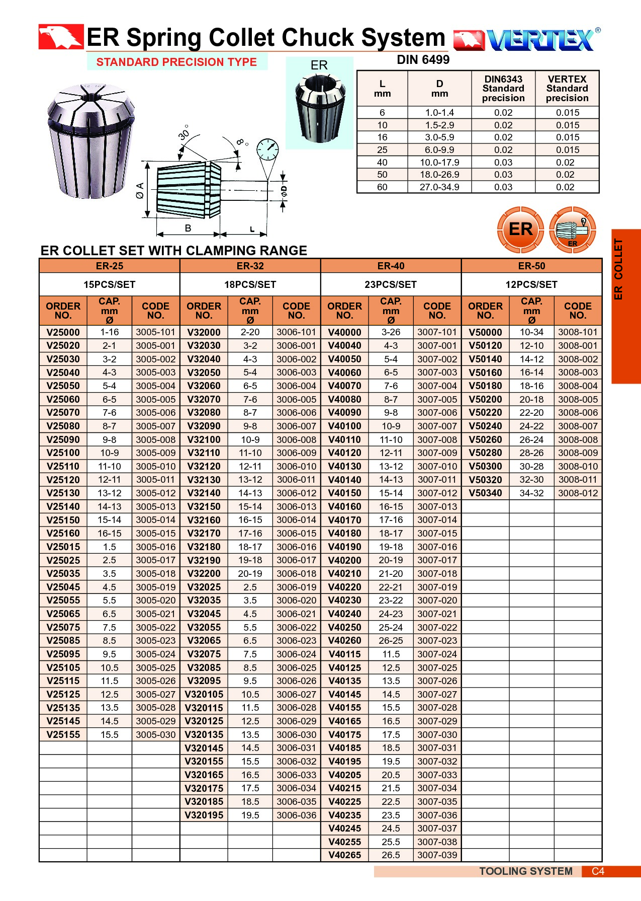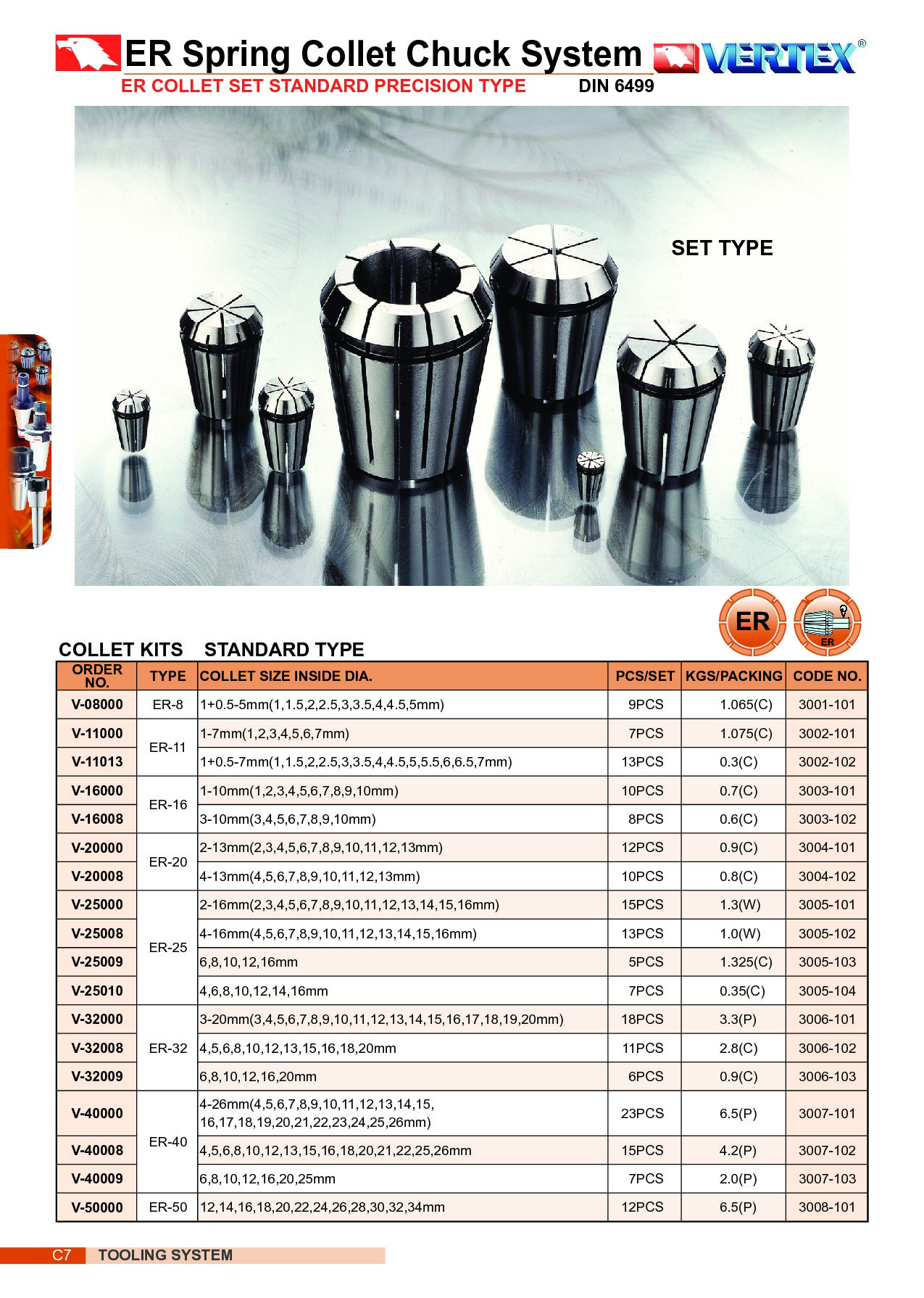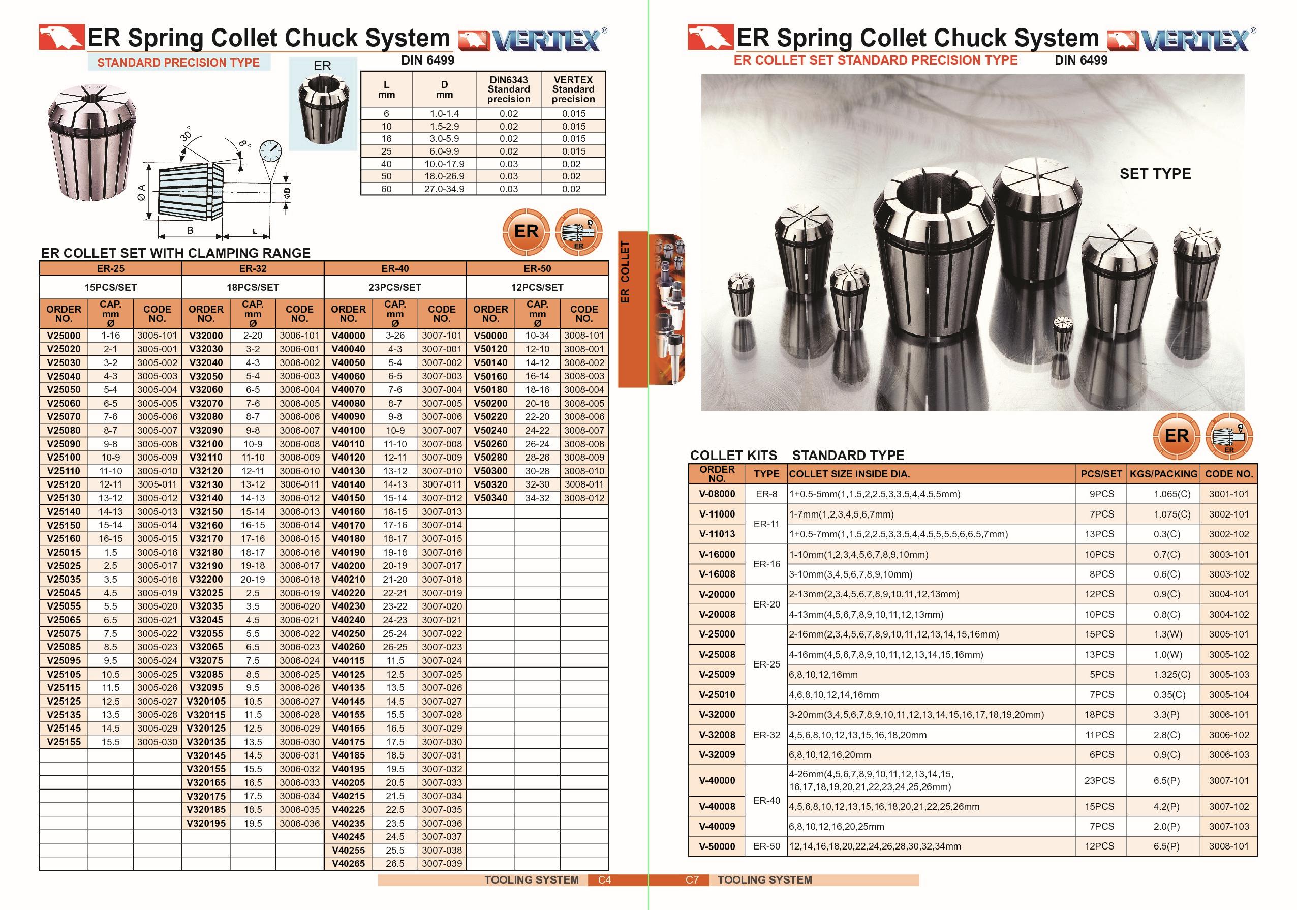 TULEJKI ZACISKOWE ER-40 6-25 kpl. 7 STANDARD
