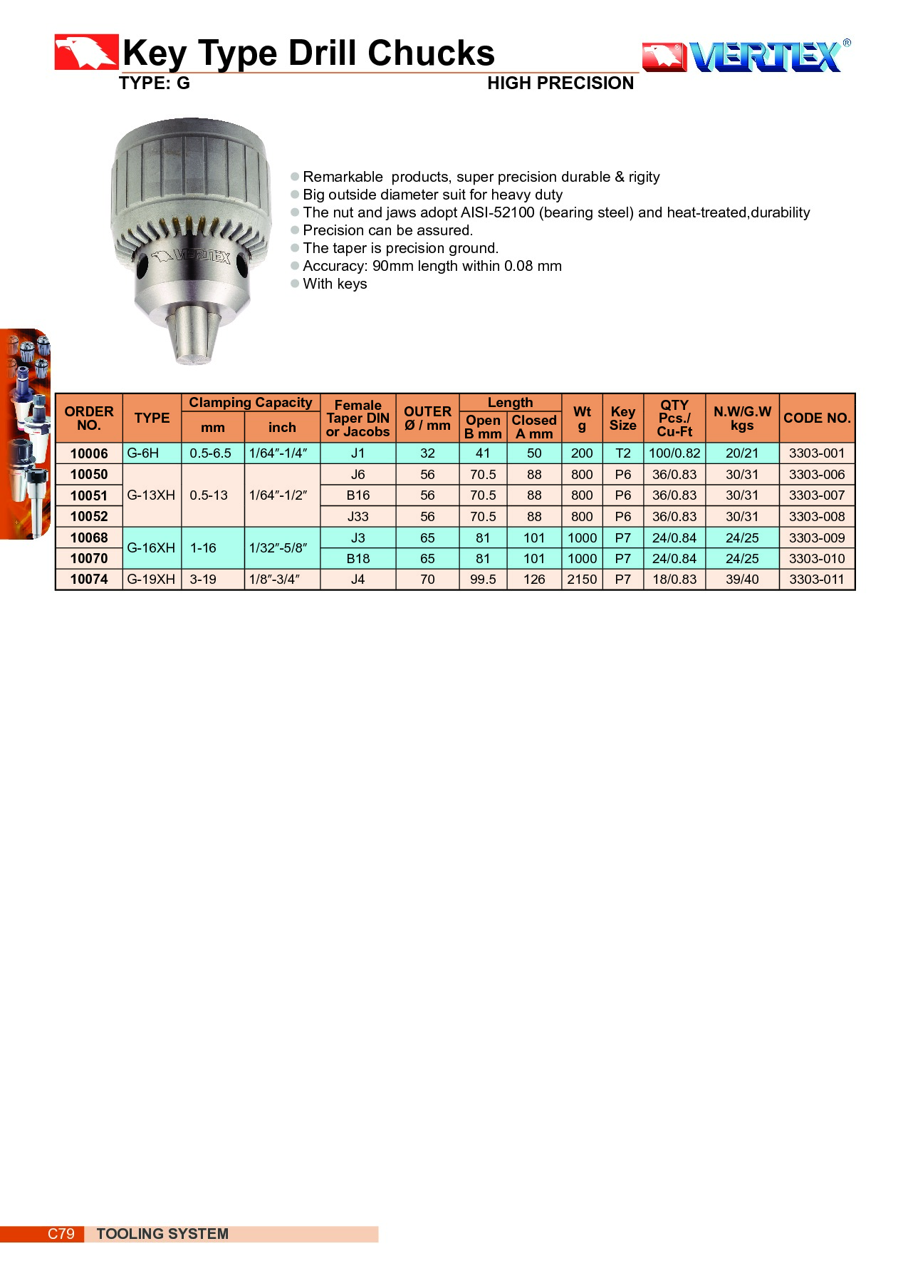 E521-010 3303-001 UCHWYT WIERTARSKI KLUCZYKOWY G-6H 0.5-6.5 J1 SZT. 78,30