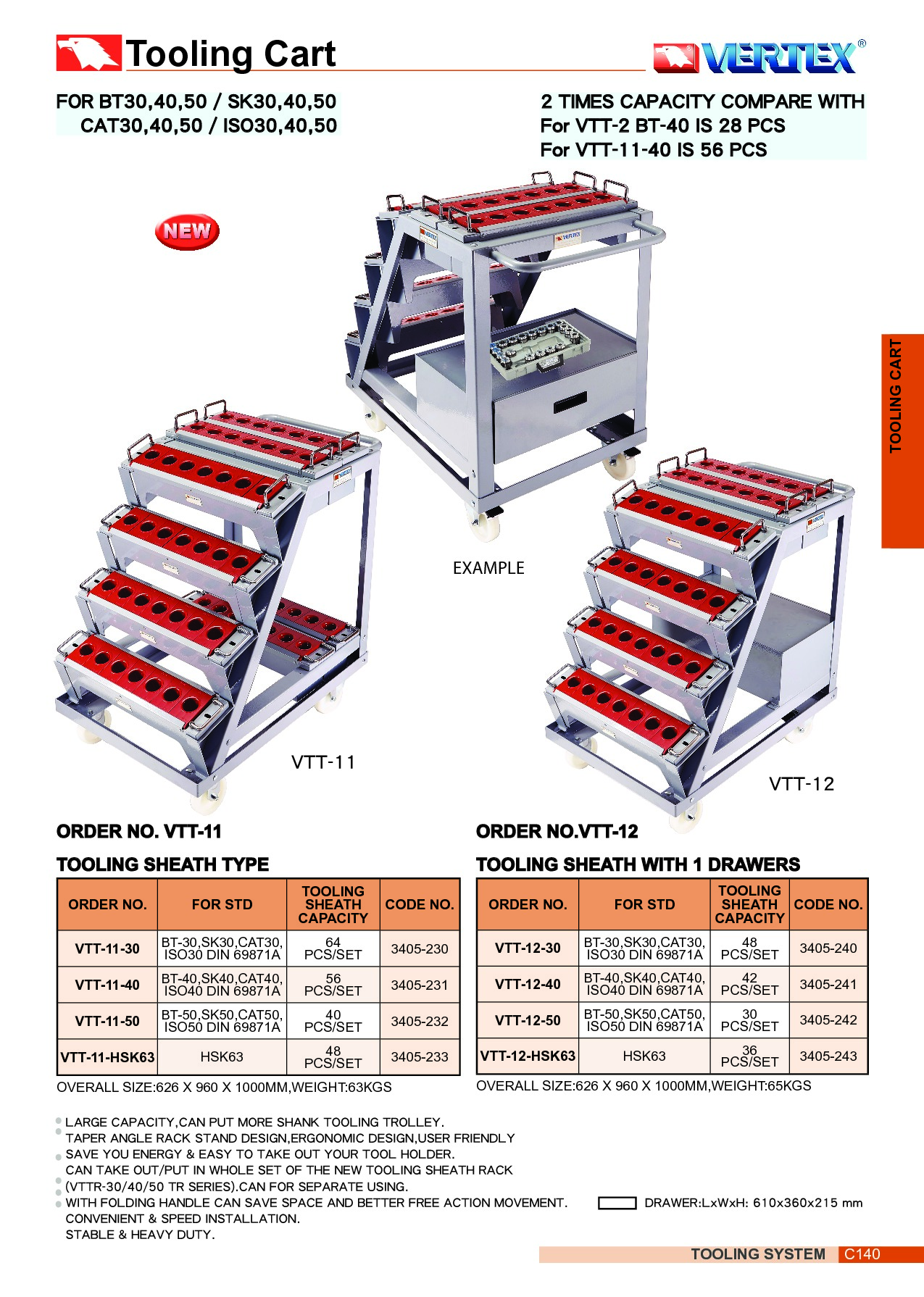 P383-180 3405-240 WÓZEK NARZĘDZIOWY Z SZUFLADĄ VTT-12-30 48 OTW. SK30 SZT. 3 414,87