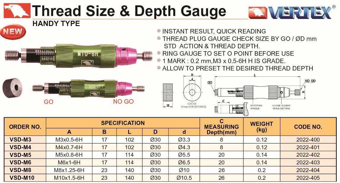 G228-012 2022-402 SPRAWDZIAN GWINTU Z GŁĘBOKOŚCIOMIERZEM VSD-M5 SZT. 514,50