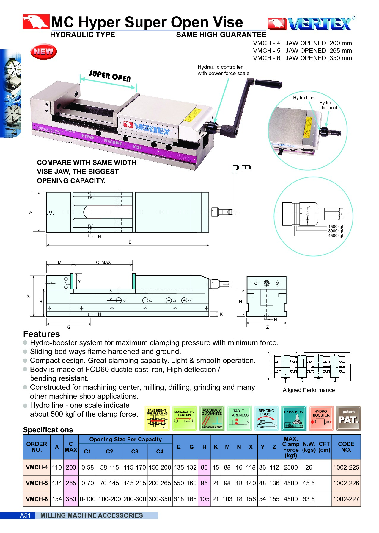 Identyczna zasada działania dotyczy wszystkich modeli imadeł ze wspomaganiem hydraulicznym firmy Vertex