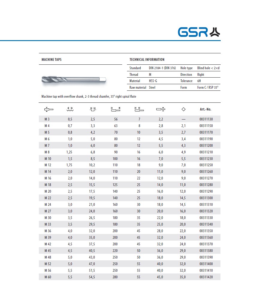 W135-030 310170 GWINTOWNIK M 5/35* DIN-376-C HSS GSR SZT. 11,36