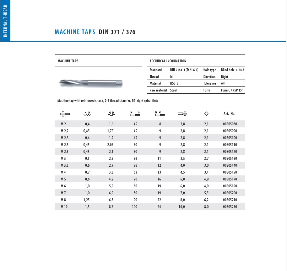W140-020 31310 GWINTOWNIK M10/15* DIN-371-C HSS GSR SZT. 20,00