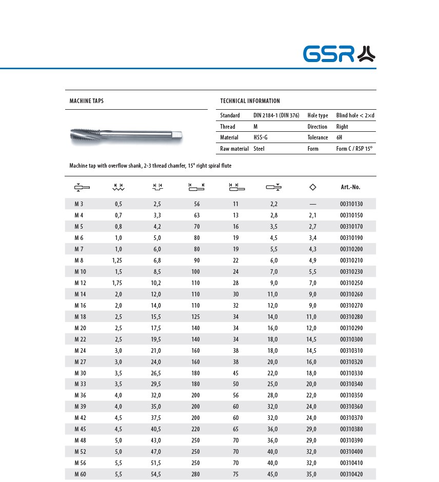 W140-010 31304 GWINTOWNIK M 4/15* DIN-371-C HSS GSR SZT. 11,67